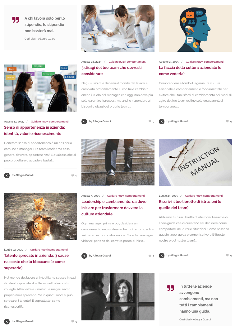 Non posso che consigliare il libro di Allegra Guardi a chiunque si occupi di persone, organizzazioni e cultura.